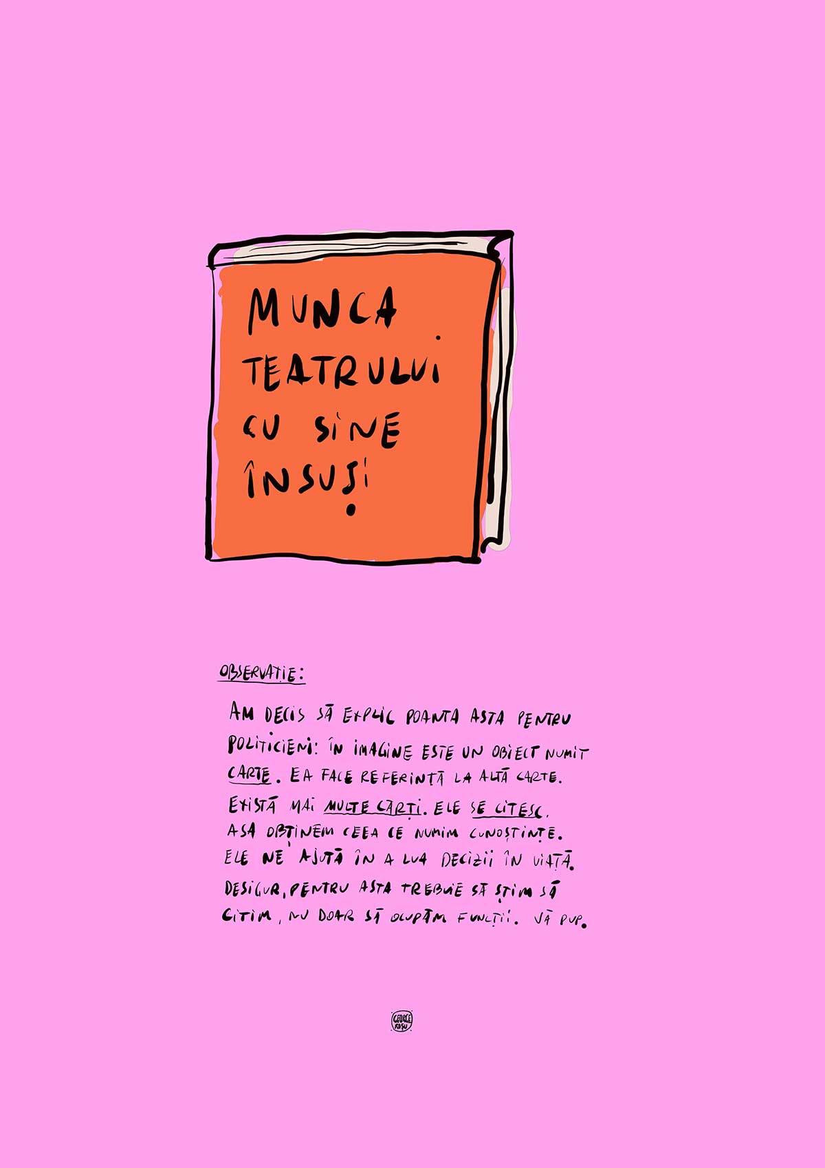 Facem un salt înapoi timp. Răsfoim Regulamentul de organizare şi funcţionare al Teatrului Municipal „Matei Vişniec” Suceava (aprobat prin HCL 146/2018, modificat prin HCL 307/2020). Îl găsiţi pe pagina teatrului. Dacă veţi citi Capitolul II. Misiune şi viziune. Obiect de activitate., veţi găsi fraze ca: „Scopul Teatrului este să faciliteze realizarea incluziunii sociale prin aducerea în prim plan a unor subiecte care reflectă situaţia dramatică cu care se confruntă unii oameni sau categorii sociale”.