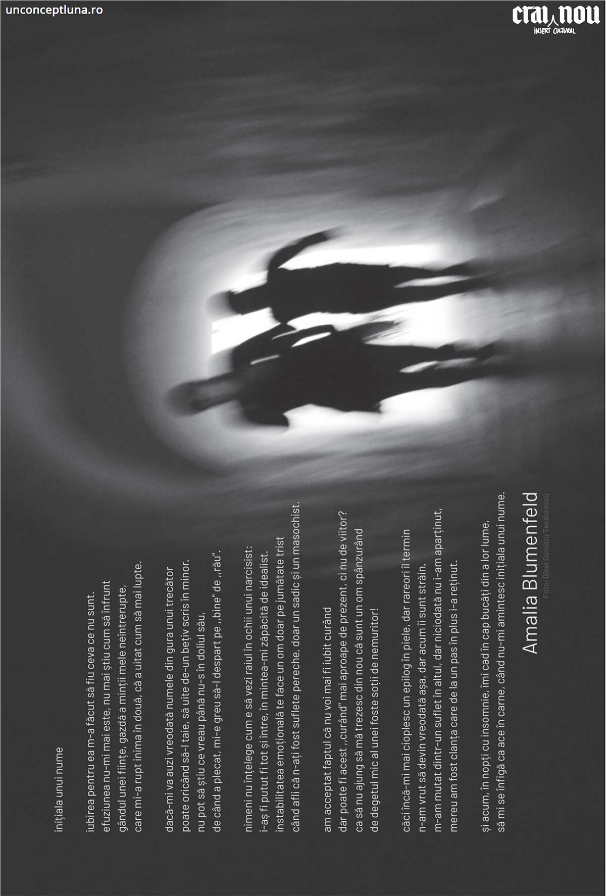 Seria prezentată în expoziţie formează o compoziţie extinsă, pe mai multe niveluri, în care fiecare fotografie funcţionează ca verigă a unei poveşti. Portrete care se contopesc cu peisaje, corpuri cu fragmente de natură, lumina cu materialitatea emulsiei.