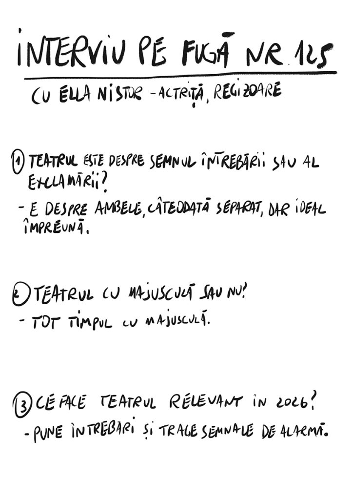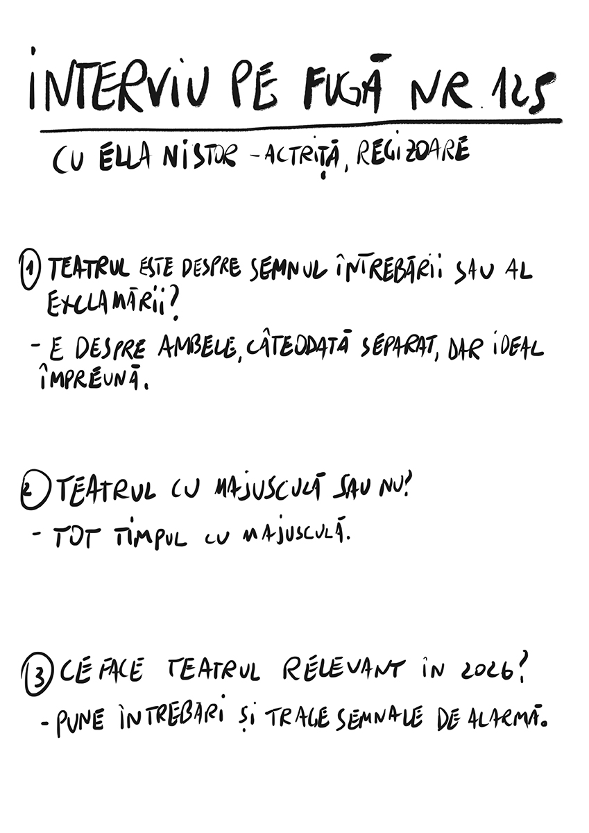 TIPOGRAFIC MAJUSCUL adaptare după un text de Gianina Cărbunariu, regia și scenografia: Ella Nistor, videografia: Ionuț Crețu, coregrafia: Victoria Bucun. Distribuția: Mugur Călinescu: Ionuț Crețu, Rodica Uncescu: Lidia Uja, Mihai Călinescu: Sorin Ciofu, Mătușa: Silvia Răileanu, Șef Ofițer Securitate: Cezar Amitroaei, Ofițer Securitate: Răzvan Amitroaei, Ofițer Securitate: Ioan Crețescu, Psiholog: Alexandra Acalfoae. Producție a Teatrului „Mihai Eminescuˮ Botoșani. Data reprezentației: 22 februarie 2026.